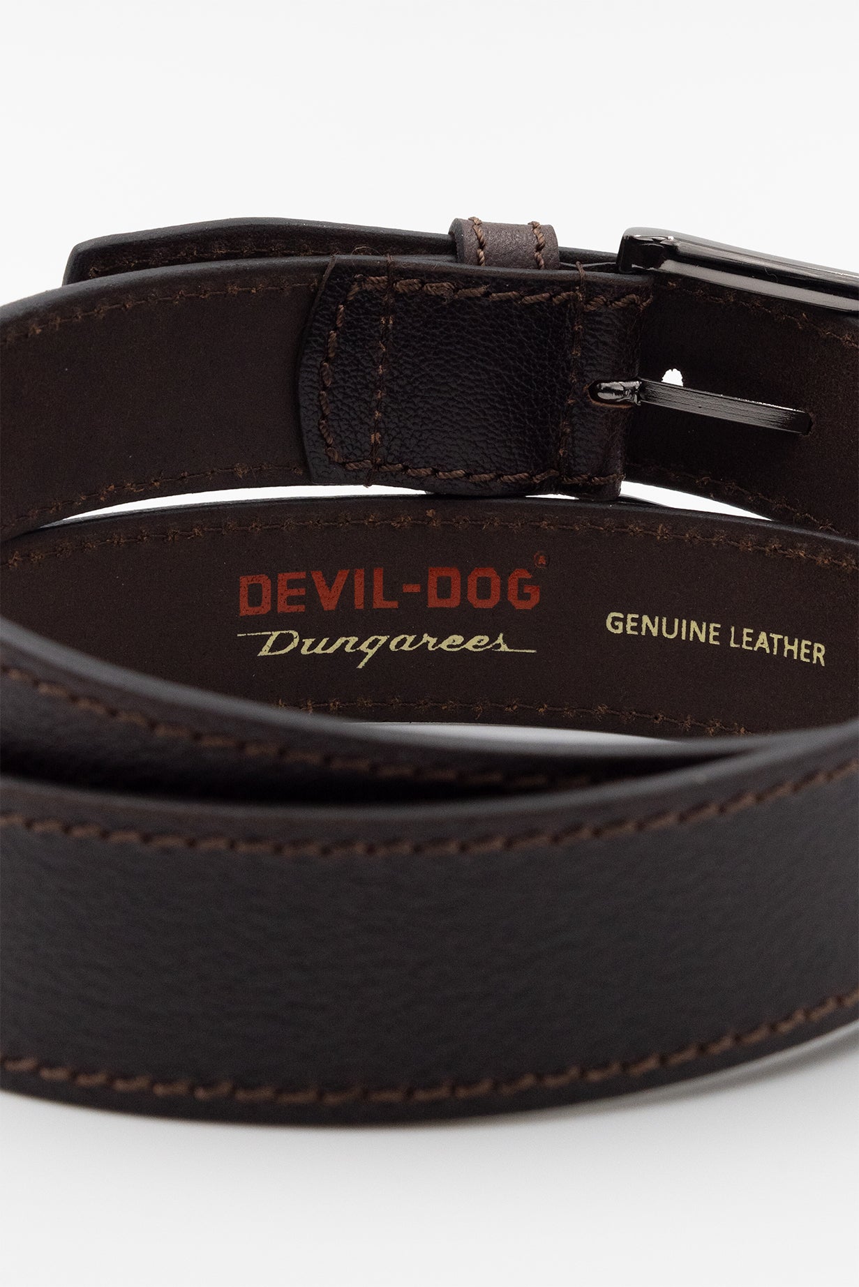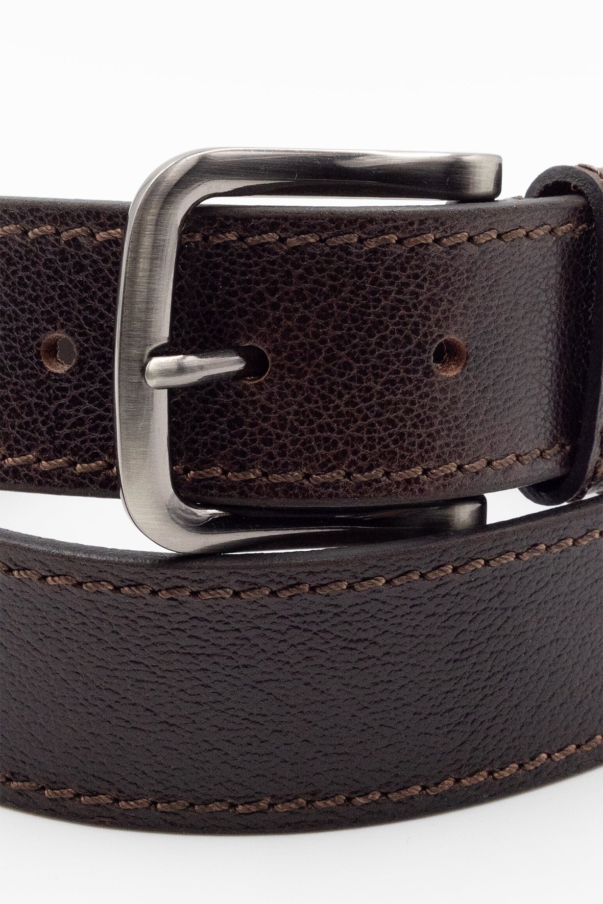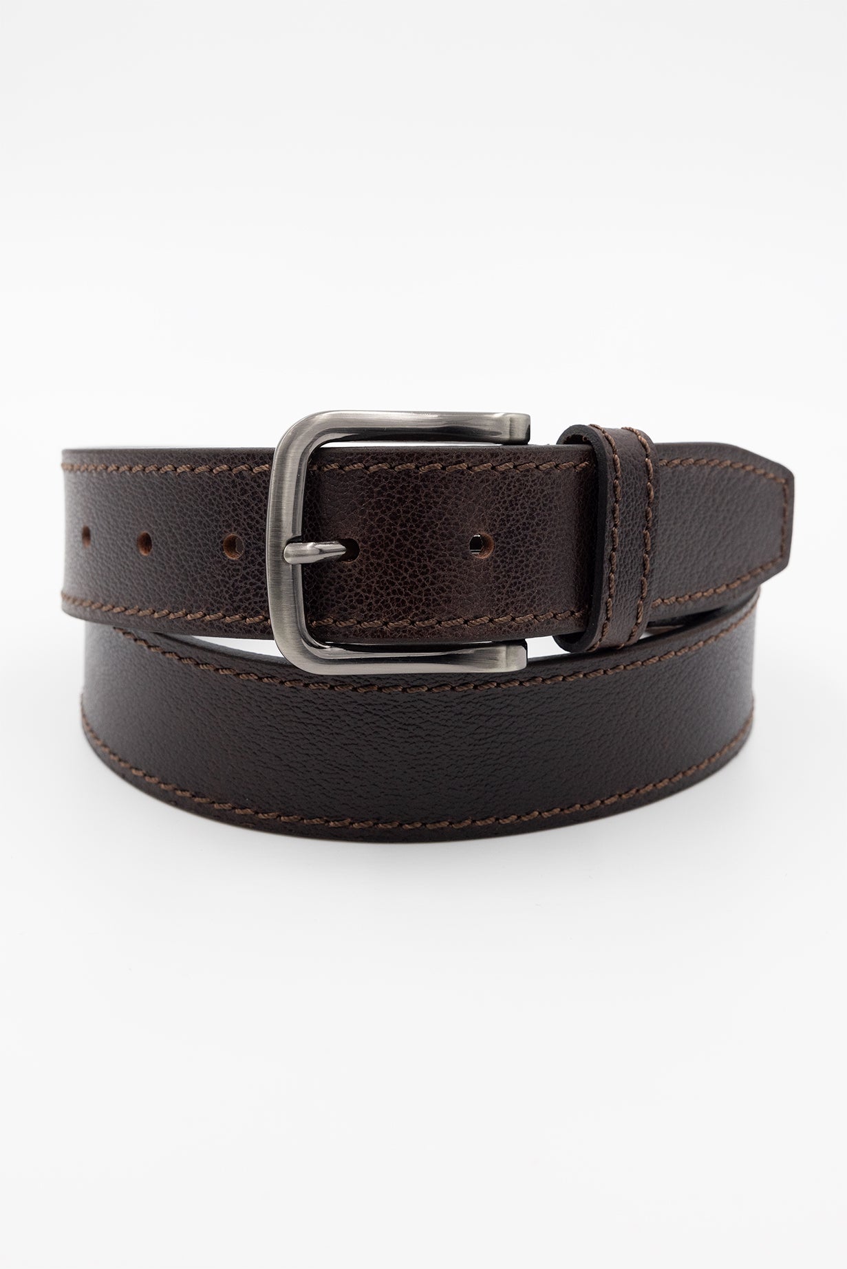 Crafted from genuine leather, this belt features a rich surface texture enhanced by tonal stitching for a subtle, sophisticated finish. The sleek nickel-finish buckle adds a polished touch, making it a versatile accessory that effortlessly complements both casual and dress looks.