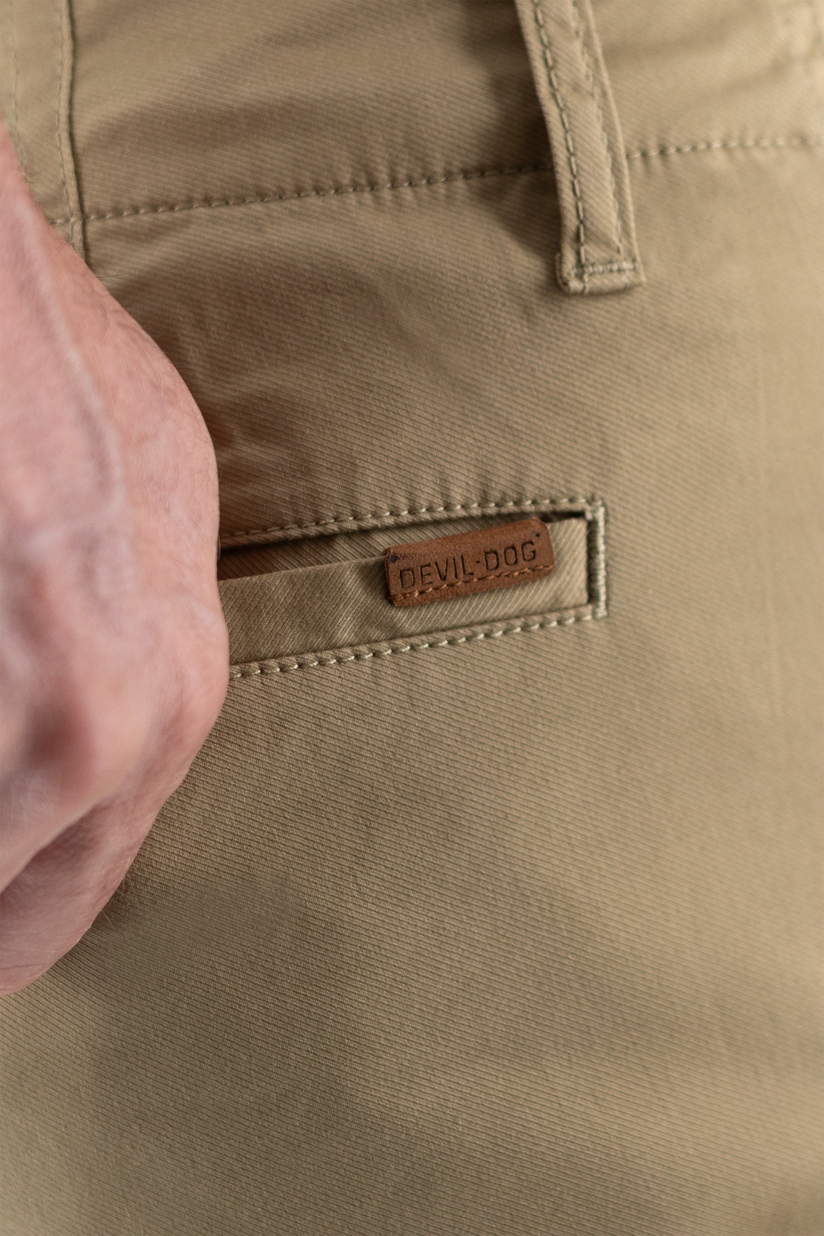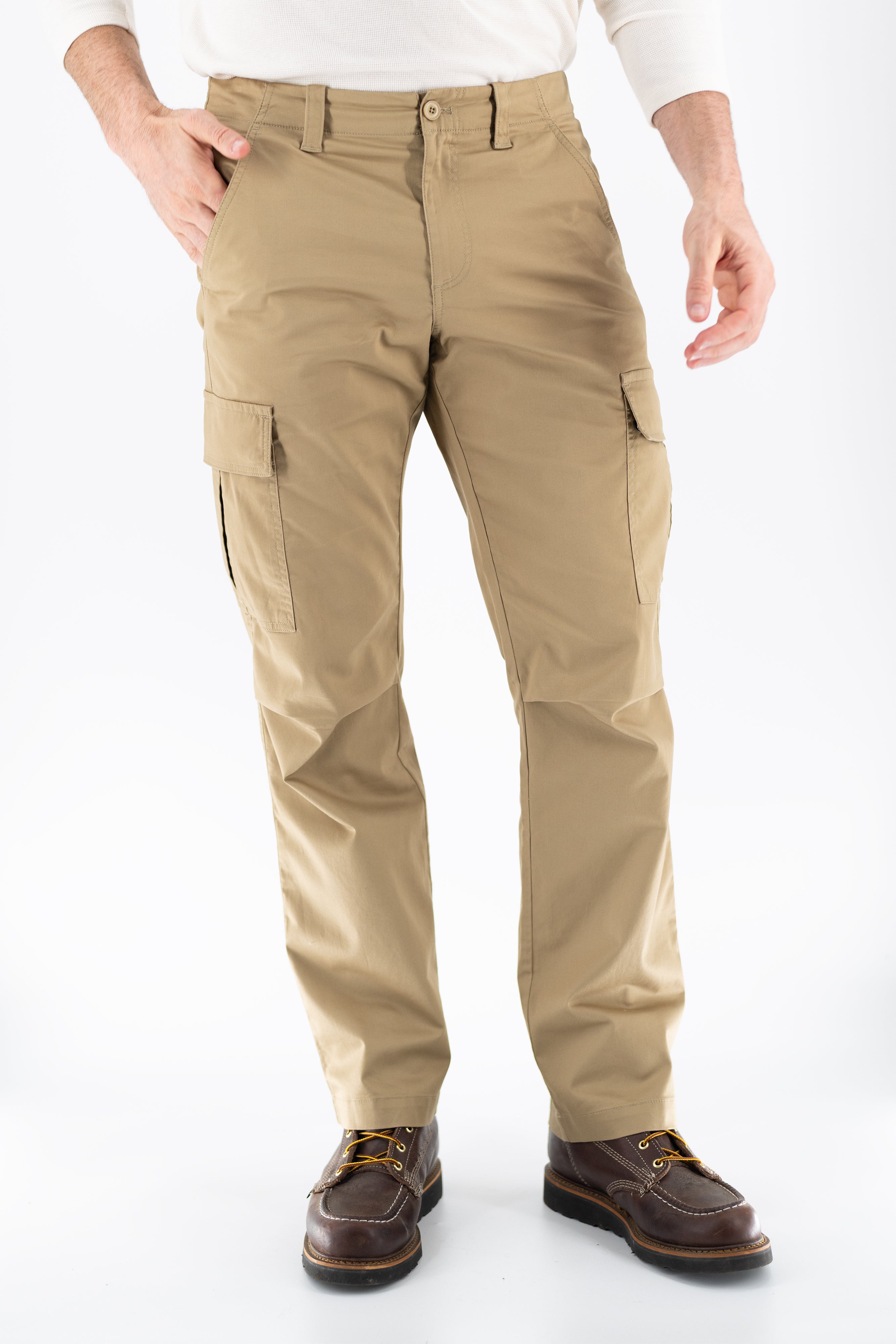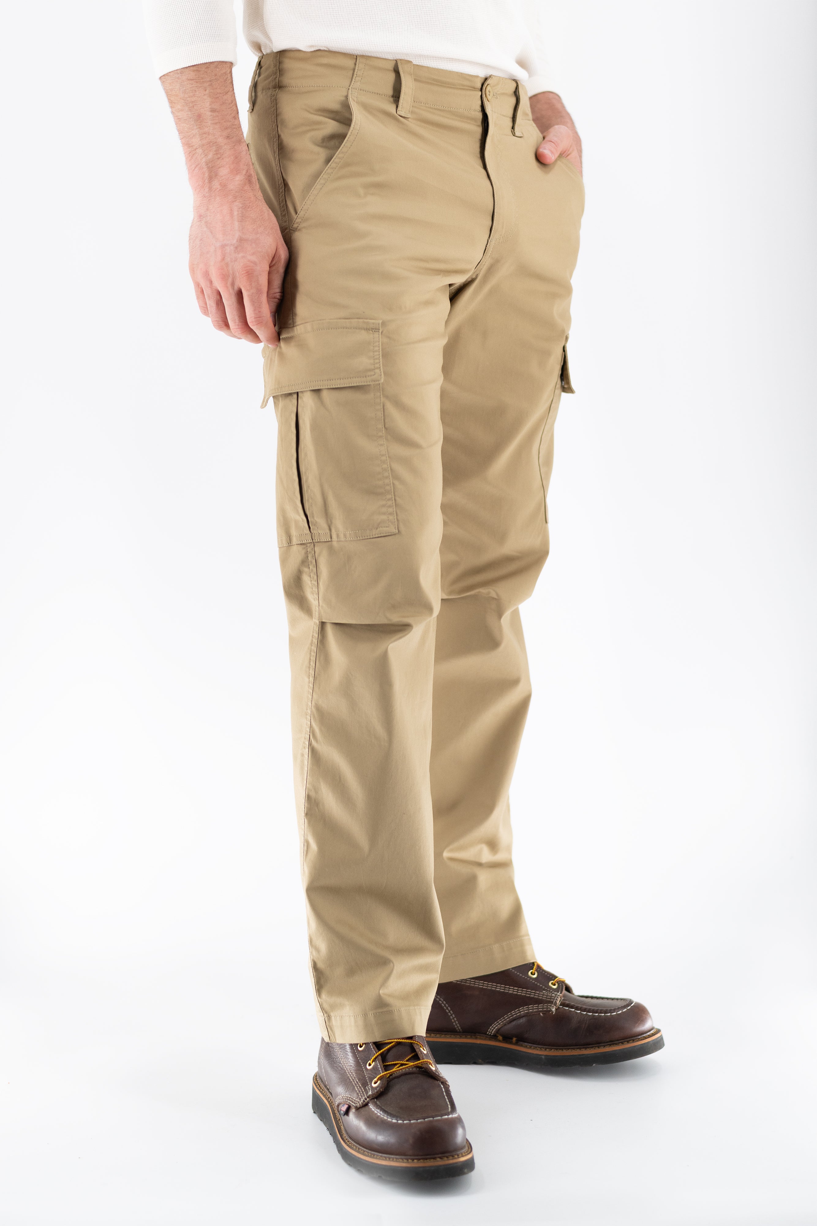 Originally designed for military strength and durability, cavalry twill makes our field pant tough enough for anything. A peach-finish gives it a soft, lightweight handfeel, while the articulated knee adds ease and comfort. Rugged yet refined, it features roomy bellowed cargo pockets with snap closures and clean back welt pockets with a darted waistband for a secure fit.
