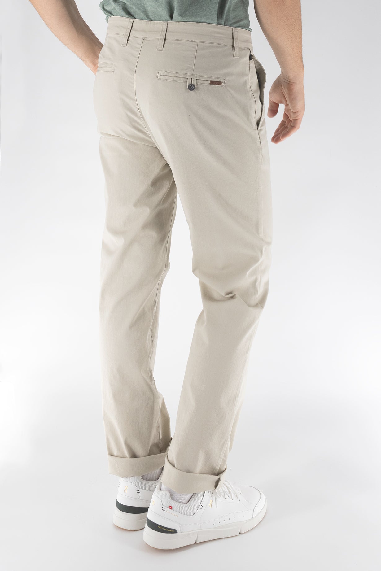 - Open back welt pocket at wearers left.