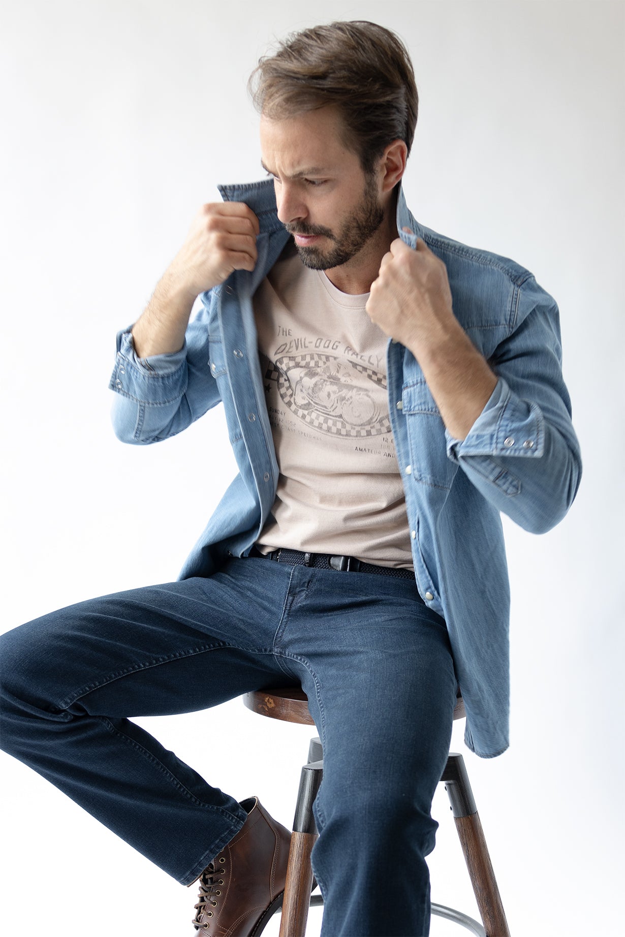 - Double needle stitching detail.
