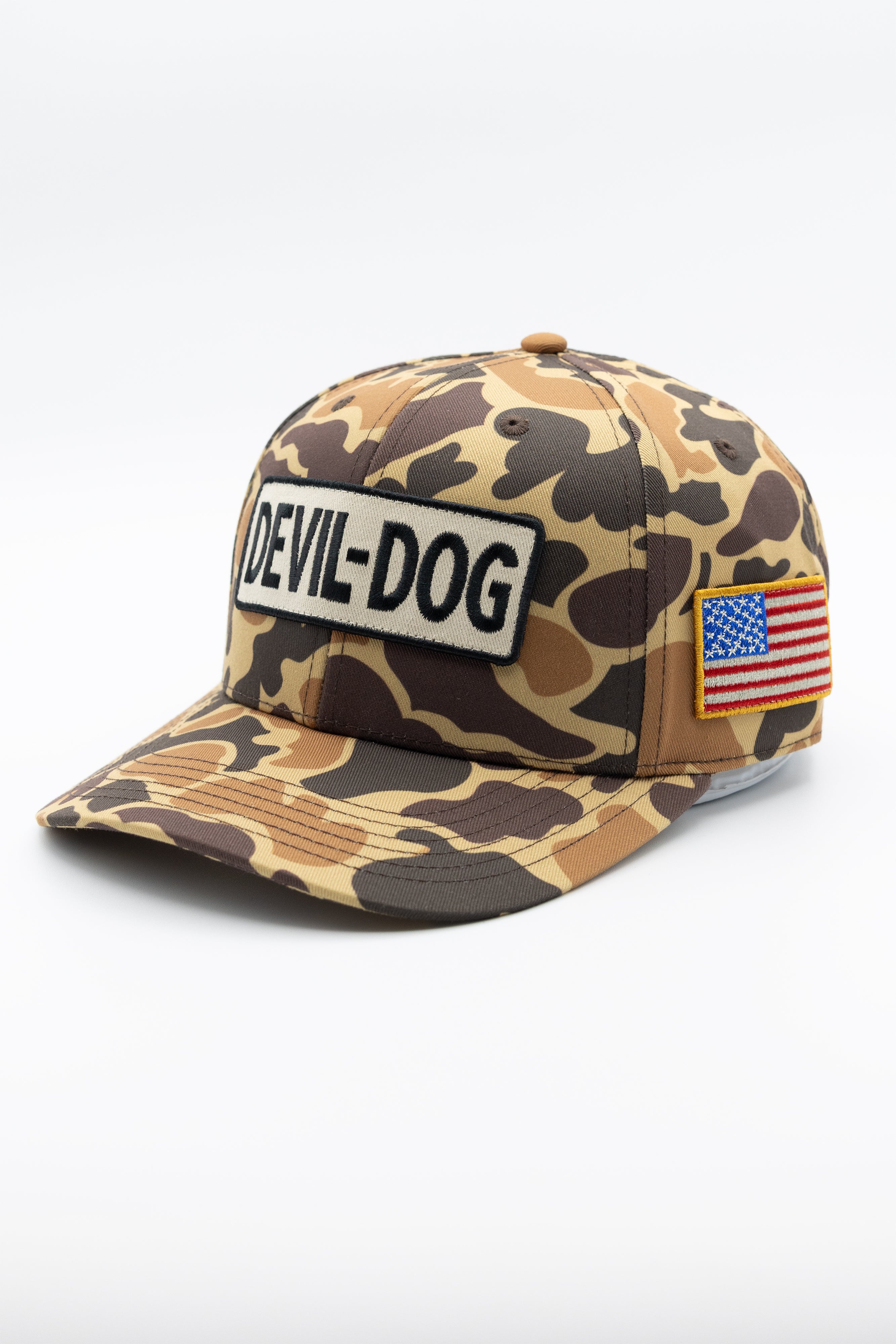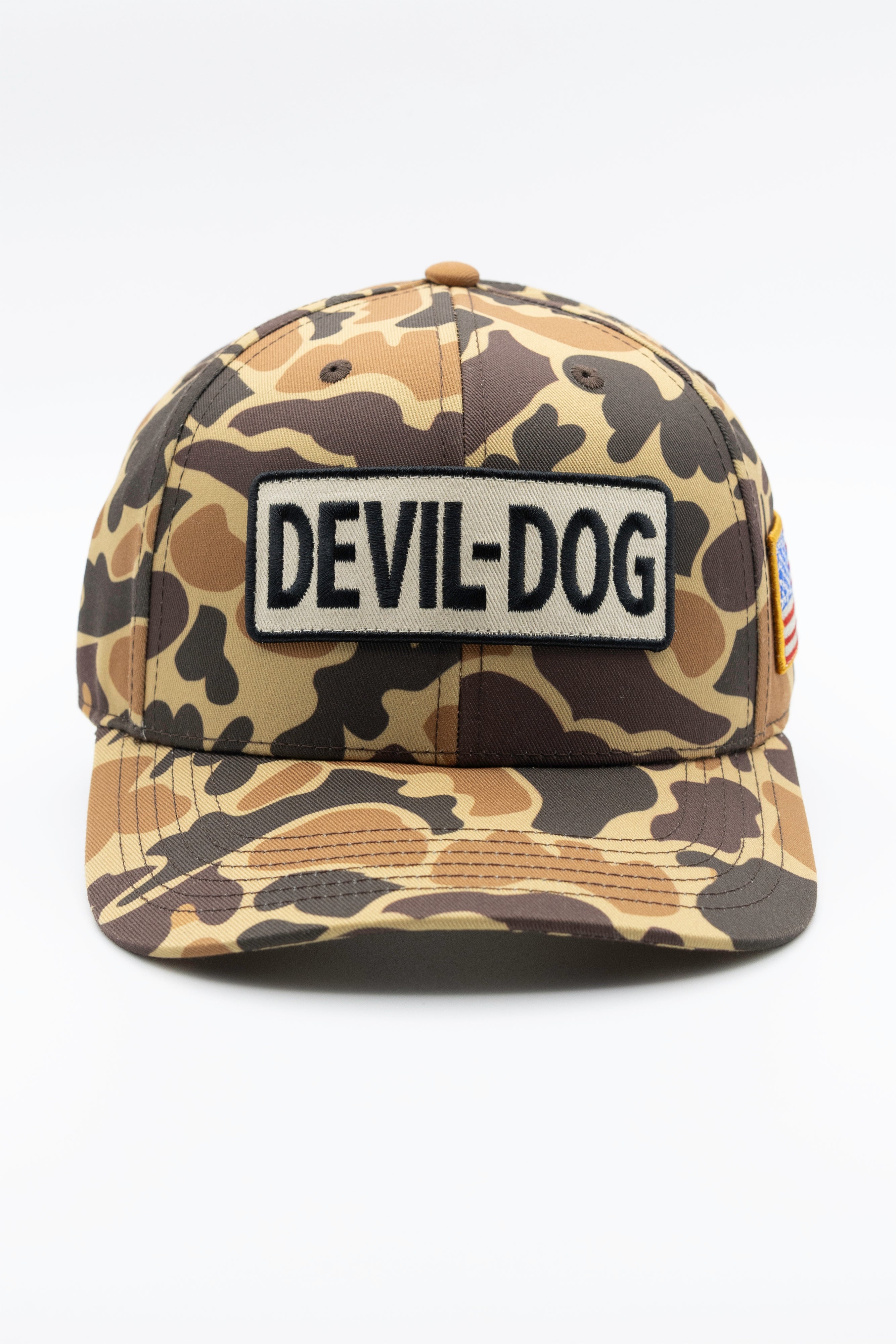 From the woods to the worksite, this duck camo trucker is built to go where you go. Cotton twill keeps it tough, and the snapback adjusts for all-day wear. The American flag patch salutes where it’s from, and that DEVIL-DOG badge up front makes it clear—you’re wearing gear that works as hard as you do.