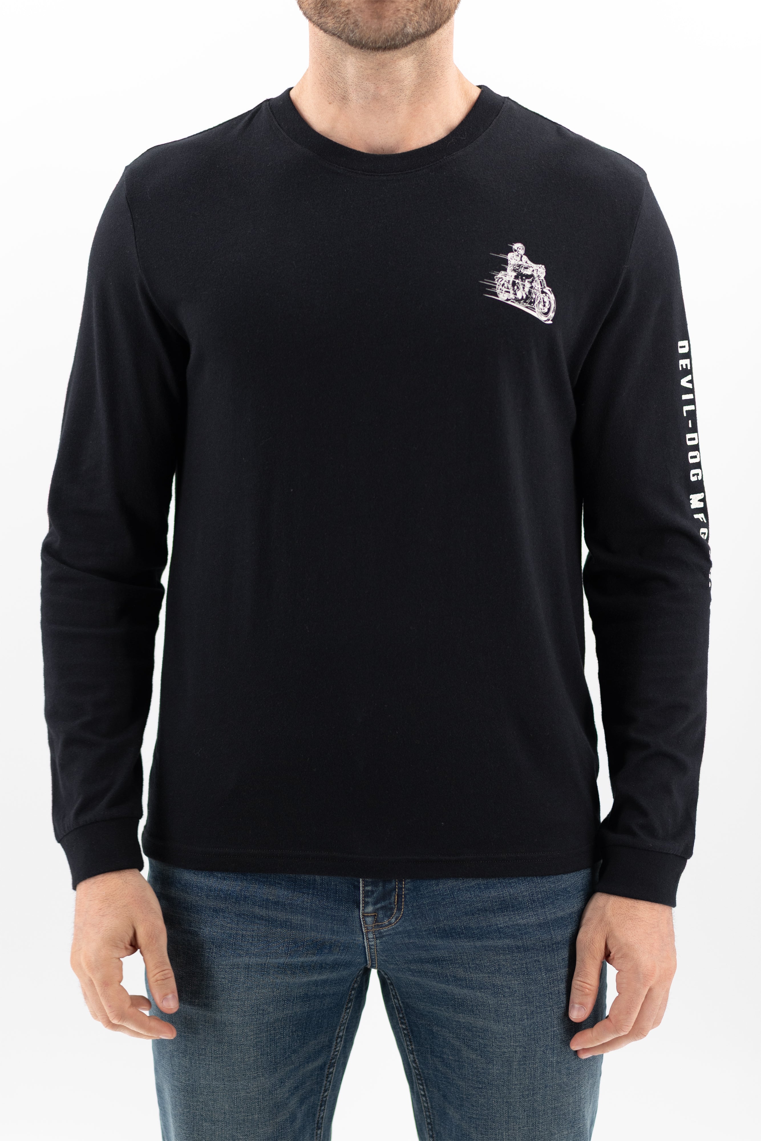 Here’s to the spirit of freedom and adventure on two wheels. This long-sleeve tee features a bold biker design on both the front and back, with the DEVIL-DOG® logo down the sleeve, confirming the American heritage of motorcycle culture. Crafted from ultra-soft cotton jersey, this branded graphic tee ensures the highest level of comfort and style.