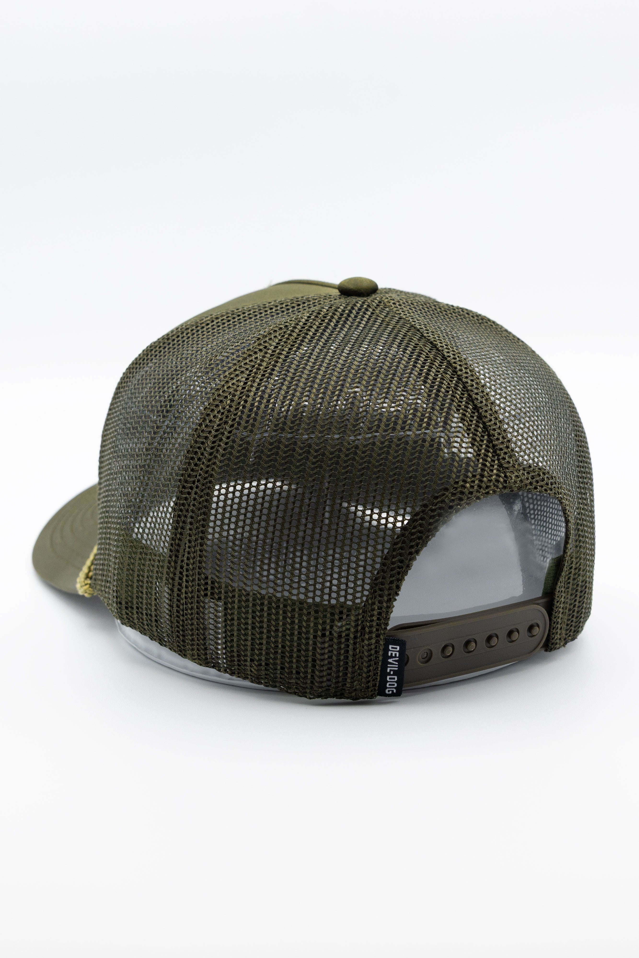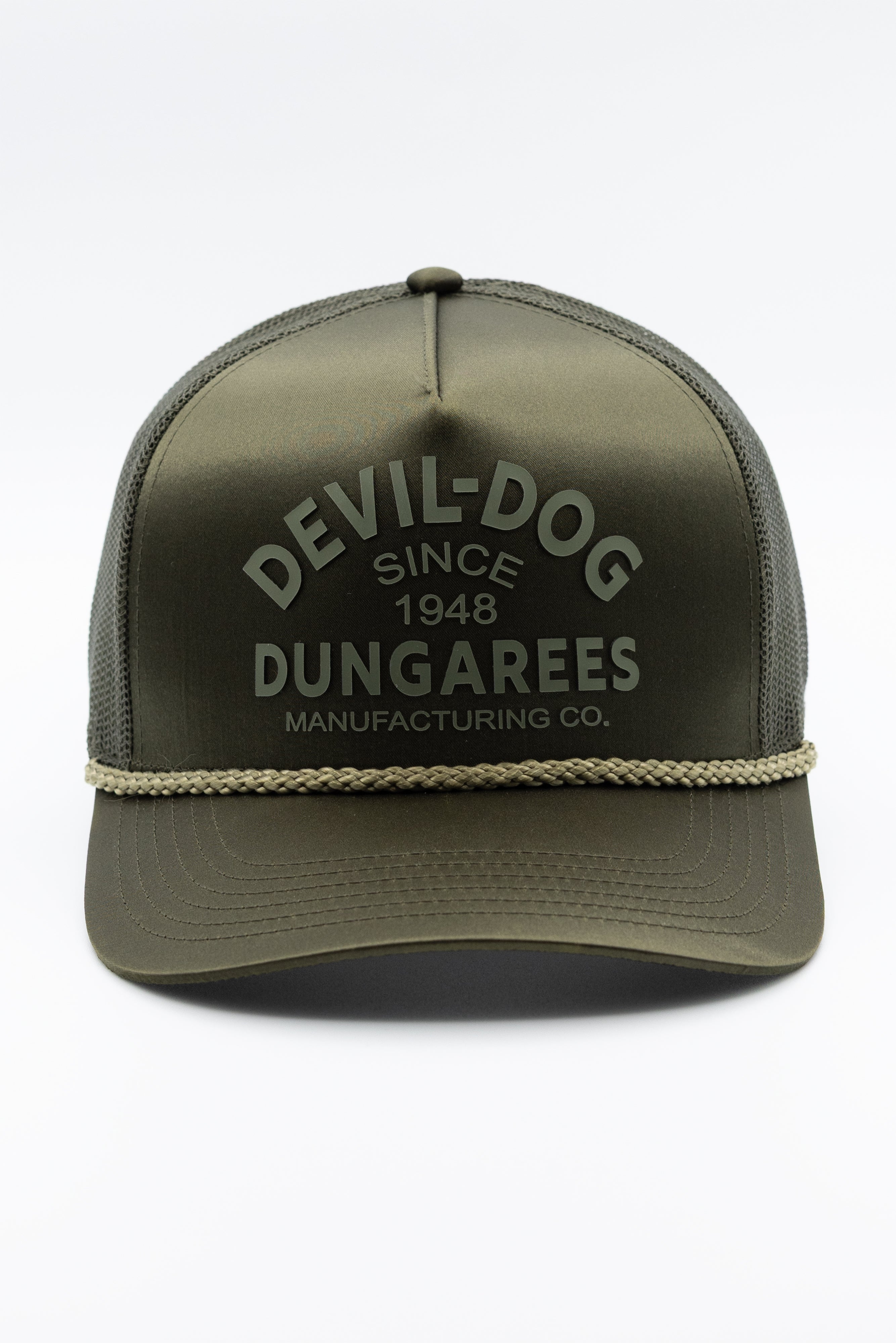 Call it your weekend uniform topper. Polyester with just enough sheen to look sharp, rope trim for a little attitude, and mesh back to keep the air moving when the work gets hot. The snapback adjusts, the cool mesh sweatband handles the grind, and the tonal rubber DEVIL-DOG screen sits front and center.