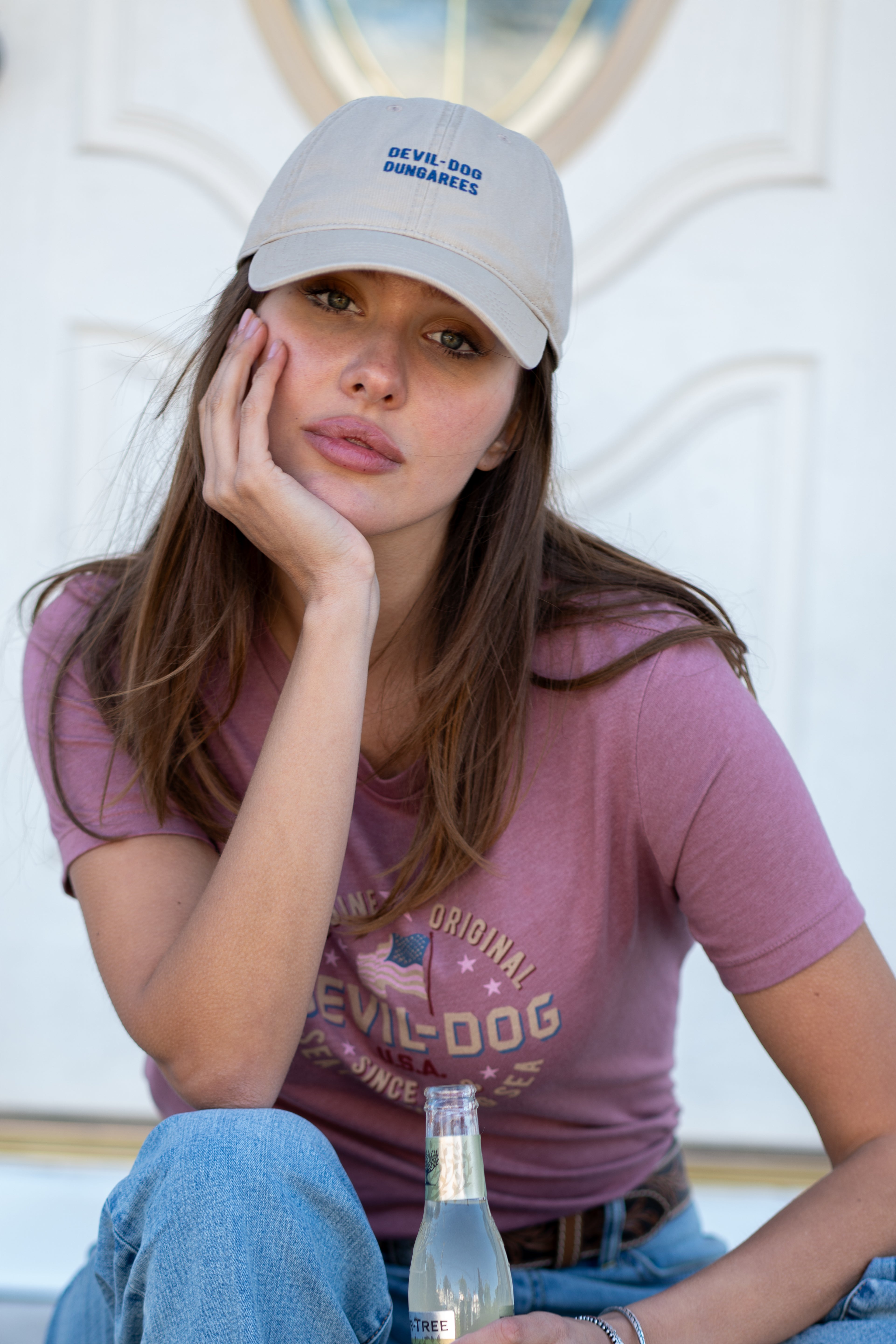 Made from washed twill for a broken-in feel from the start, this dad hat features a metal closure for easy adjustment and a clean, denim friendly DEVIL-DOG embroidery front and center. Easygoing, everyday wear that looks just as good on her as it does on you.