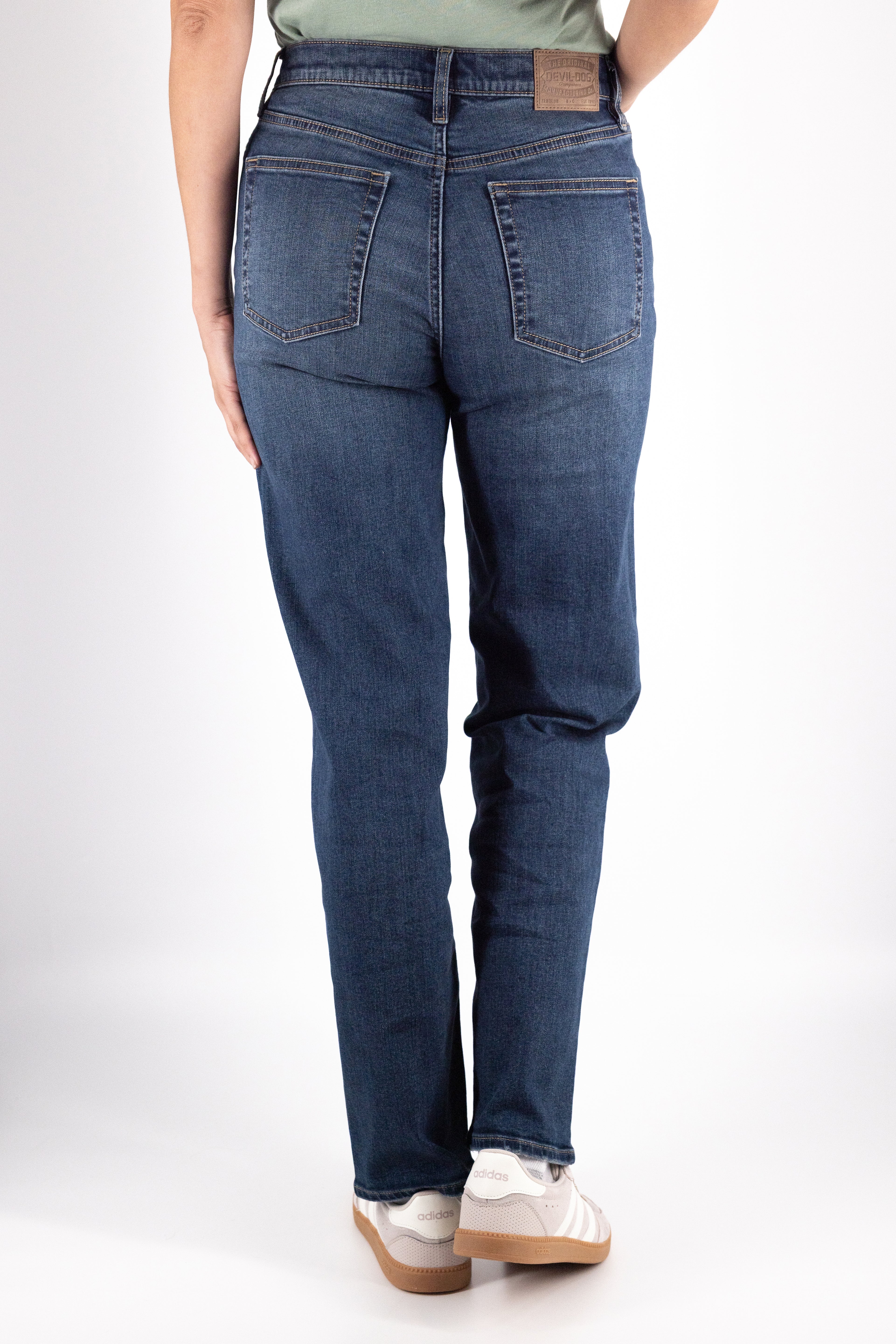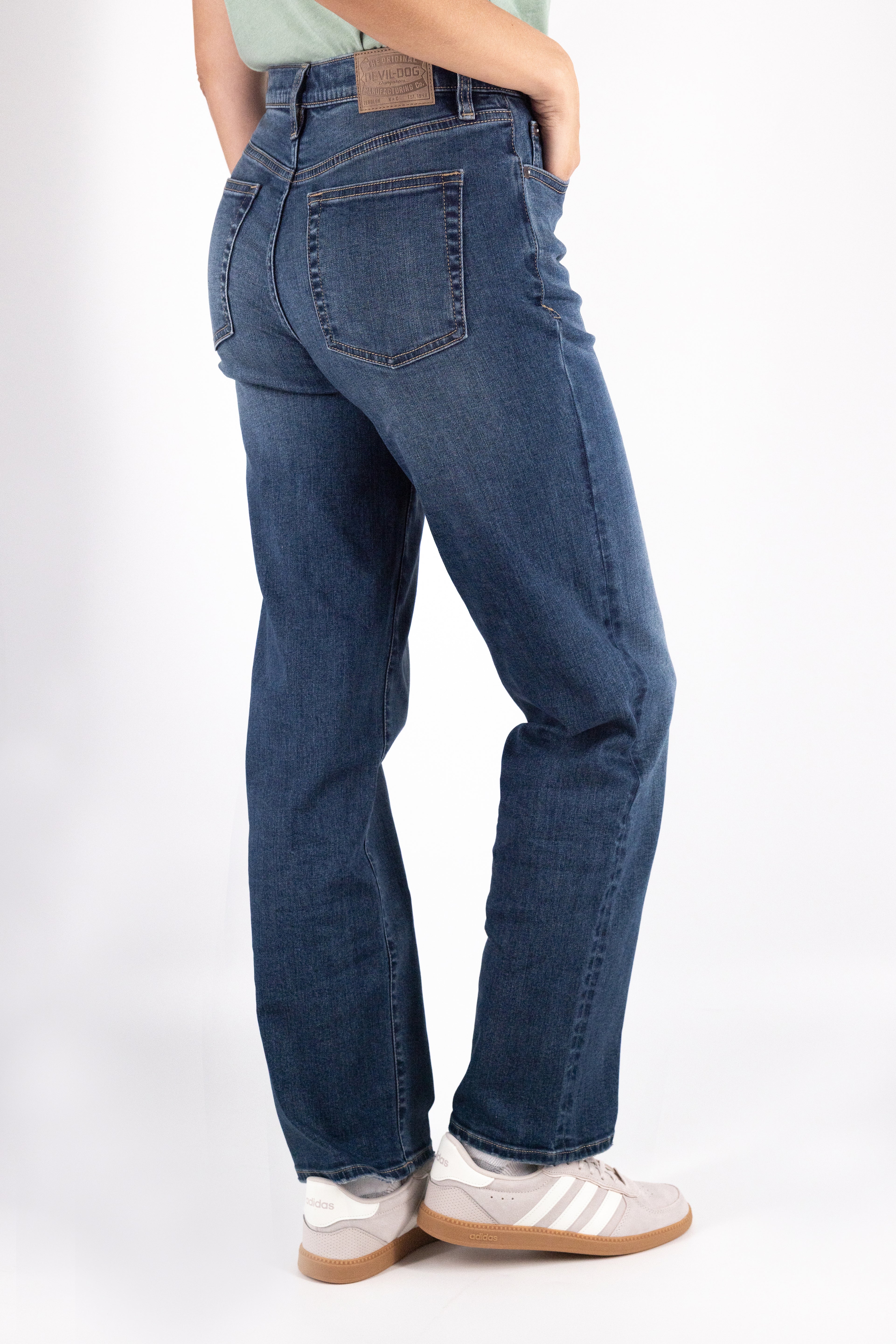A fit that works on everyone, our High-Rise Straight Jean delivers timeless style in an easy to wear, super soft stretch denim. Crafted from heritage inspired, high stretch fabric it’s designed to complement your hips and waist effortlessly. Comfort and quality, combined with our signature DEVIL-DOG details, are the perfect finishing touches.