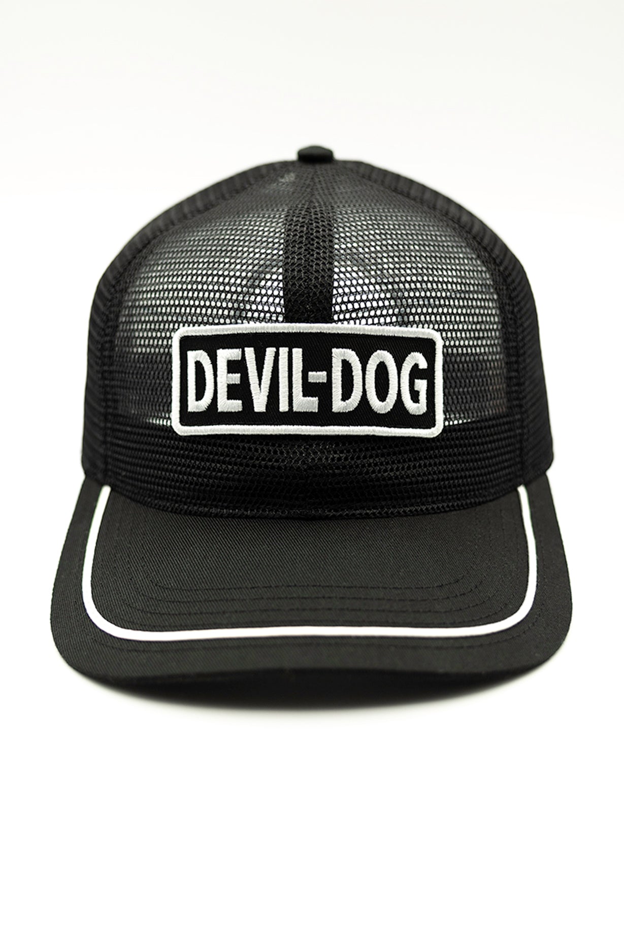 This unstructured cap offers all-over breathable mesh for a flexible, personalized fit. Accented with a bold black-and-white DEVIL-DOG patch, the brim is also emphasized with a sleek white trim.