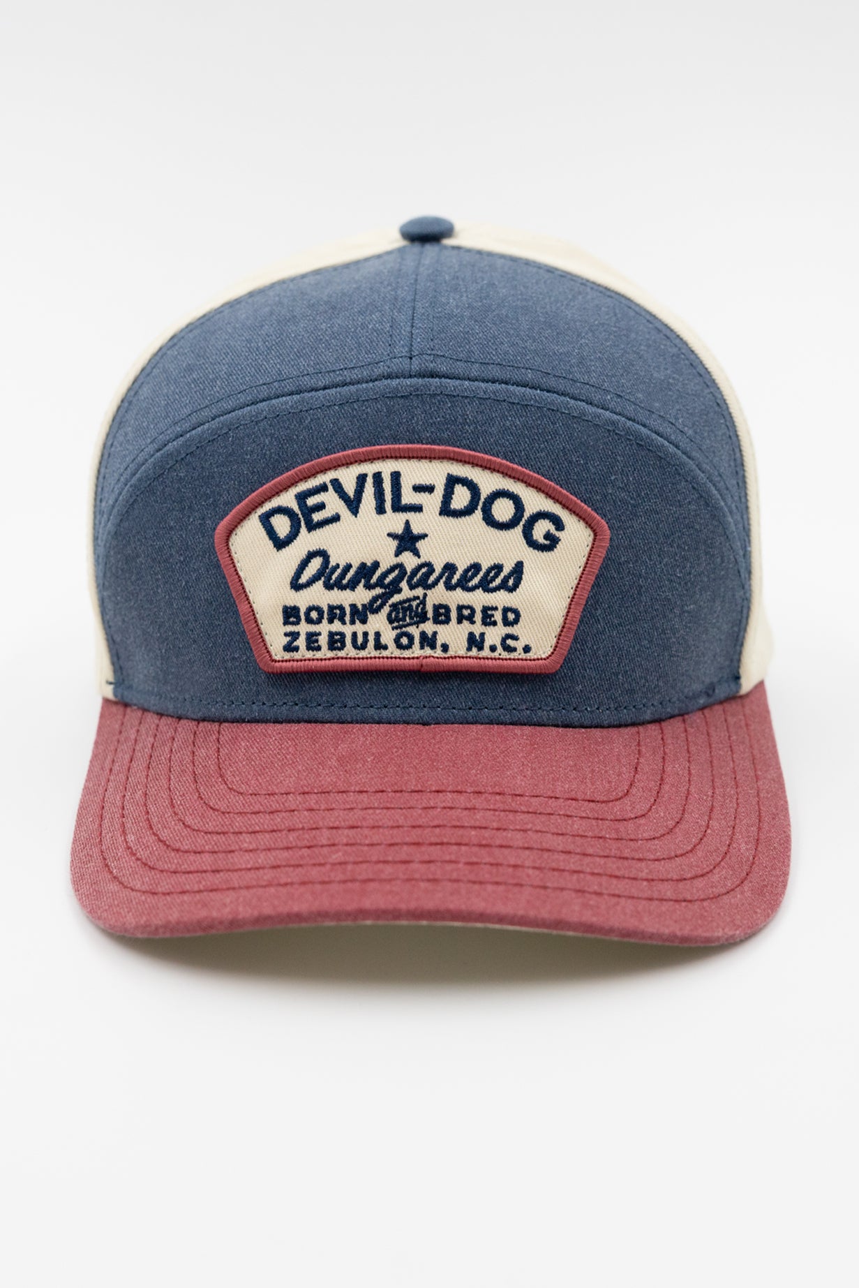 This updated 7-panel adjustable cap is made from 100% pigment dye cotton and is dedicated to the spirit of being a born & bred DEVIL-DOG®.